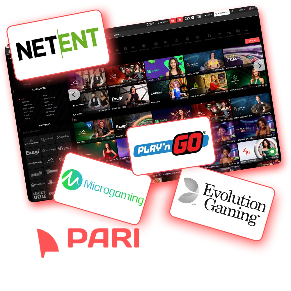 Our gaming platform Paripulse specializes in a variety of gambling entertainment, however, the most popular area is casino games. That is why we try to cooperate with various top and reliable software providers. It is thanks to the partnership with the best providers that all our games are provided with smooth graphics, intuitive controls, unique gameplay and modern interface.