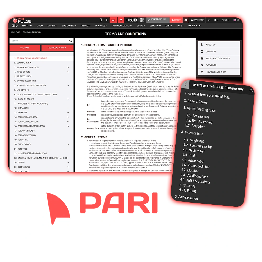 When creating an account on the PariPulse sports betting and casino platform, please read the terms and conditions carefully. These terms and conditions set out how you can use our services, your rights and obligations, and promote responsible use of the PariPulse platform in accordance with the law.